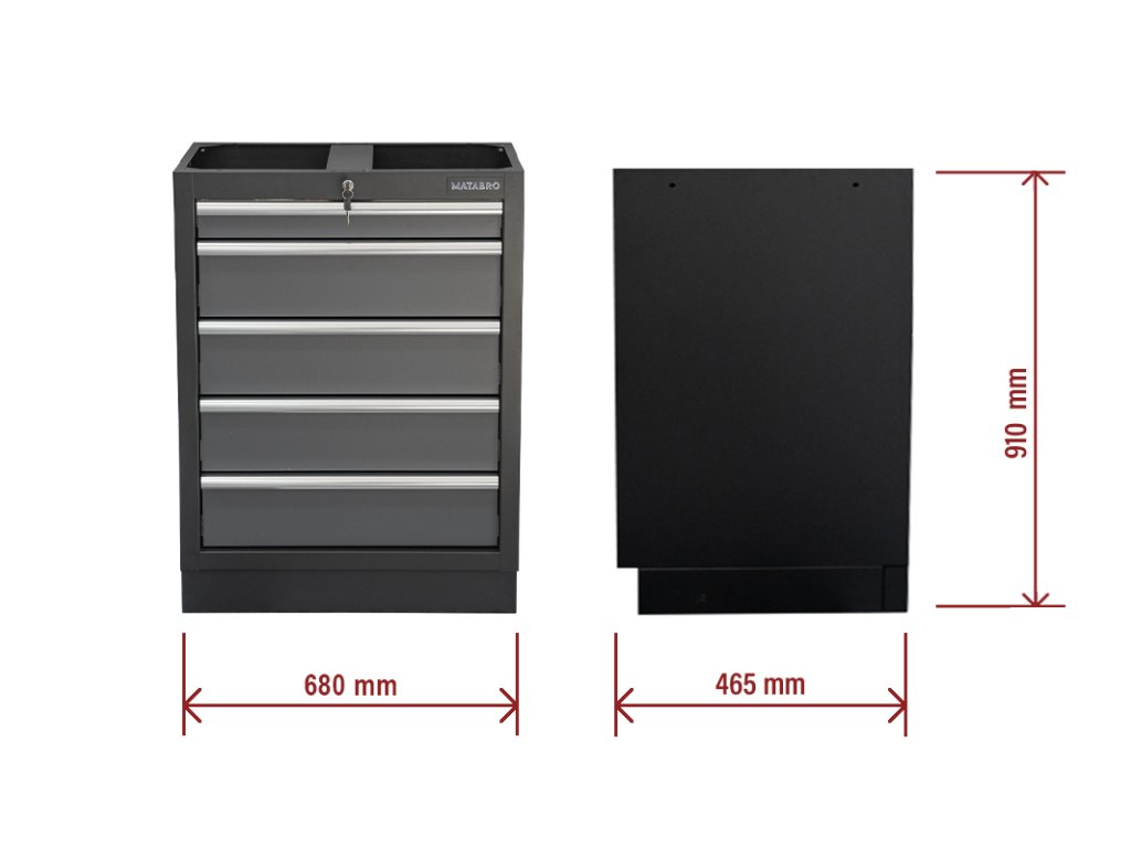 ROZBALENO - Matabro MB-TGC1305, Dílenská skříňka | 5 šuplíků | 680 x 458 x 910 mm
