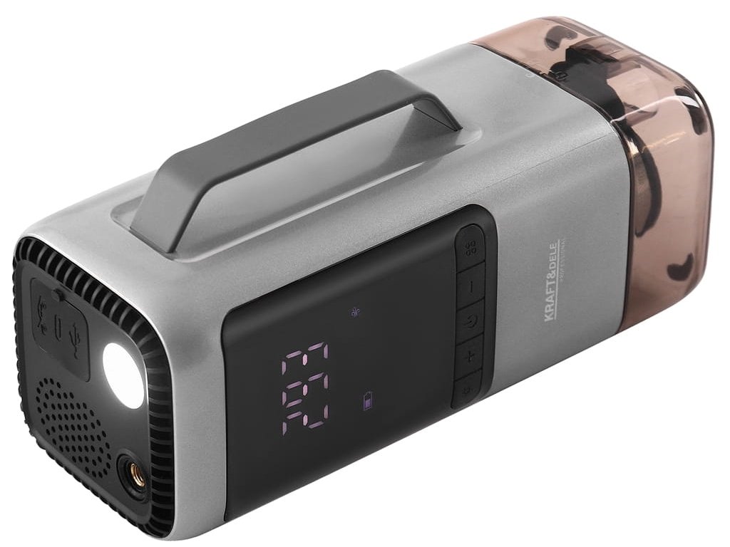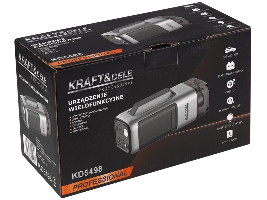 Kraft&Dele KD5498, Multifunkční zařízení s pumpou, jump starterem, vysavačem, foukačem, powerbankou 10 000 mAh a LED světlem