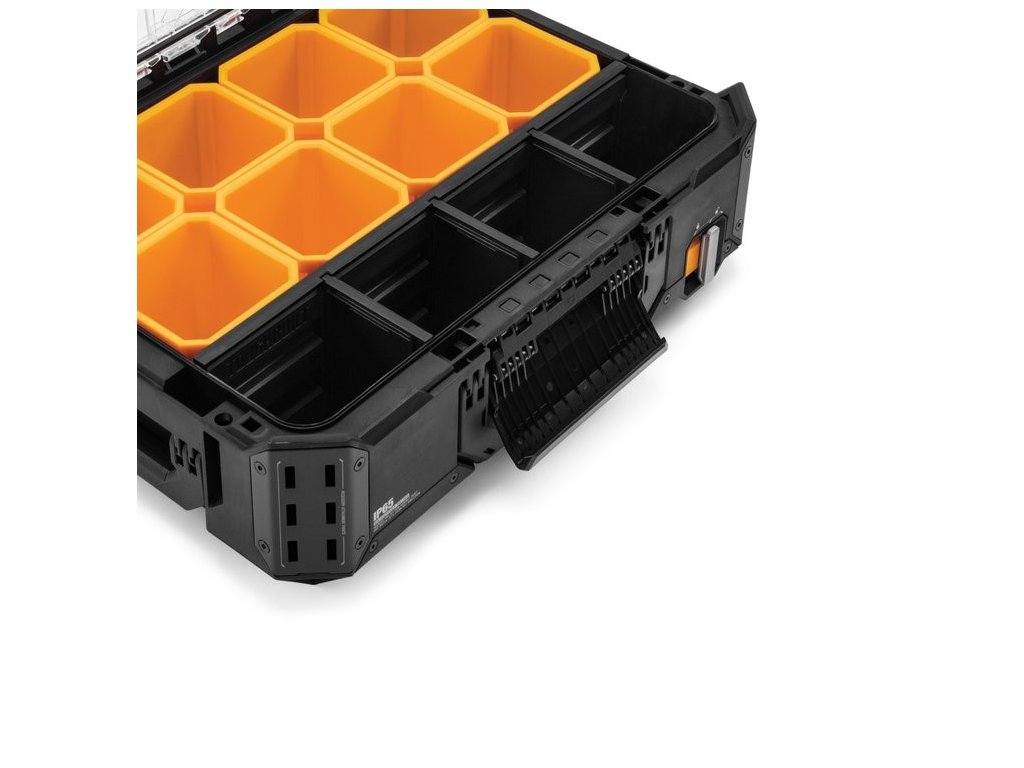 - veľký organizér TOUGHBUILT® na spojovací materiál a drobné náradie s pevnou plastovo-kovovou konštrukciou