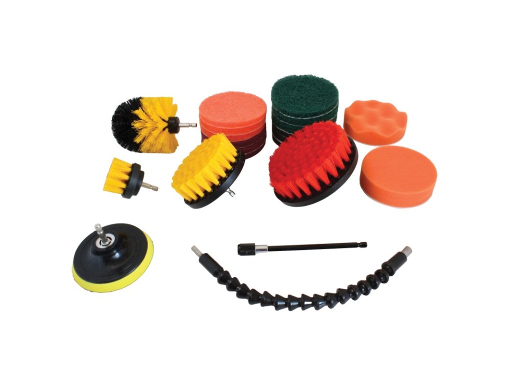 SLEVA!! Sada čisticích kartáčů a leštících kotoučů na vrtačku 11 ks, TA4200 poškozené originální balení, nepoužité ...