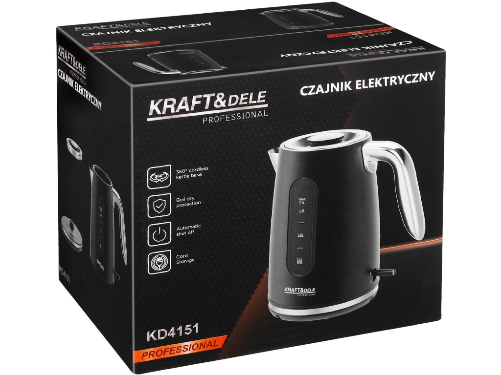 Kraft&Dele KD4151, Rychlovarná konvice 2200W 1,7L | rychlé vaření, bezpečnost, 360° otočná základna