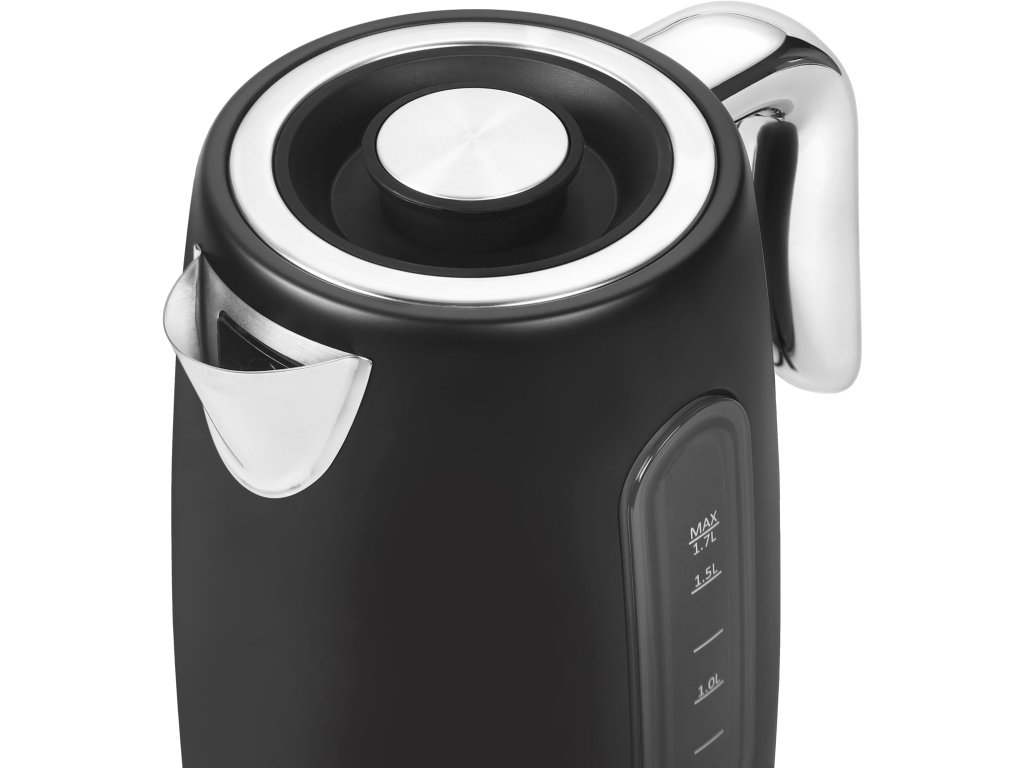 Tato elektrická konvice nabízí rychlý ohřev 2200W, velkou kapacitu 1,7 litru, bezpečnostní funkce jako automatické vypnutí a ochranu proti přehřátí, snadné čištění díky odnímatelné poklici a maximální pohodlí s 360° otočnou základnou.