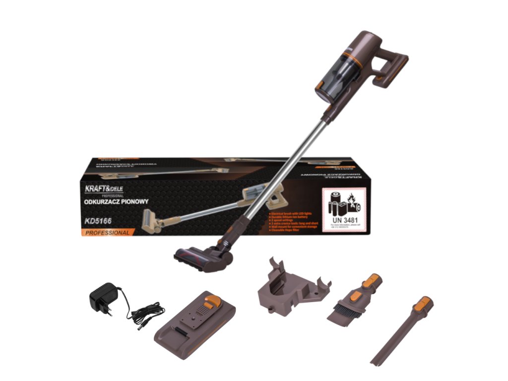 - Bezdrátový odkurzovač pionový Kraft&Dele KD5166 nabízí vysoký výkon díky zabudovanému akumulátoru 2500mAh, který umožňuje úklid bez omezení kabely.