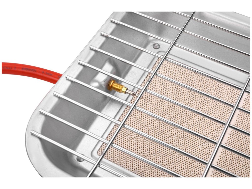 - Součástí balení je hadice pro připojení plynové láhve, která usnadňuje instalaci.
