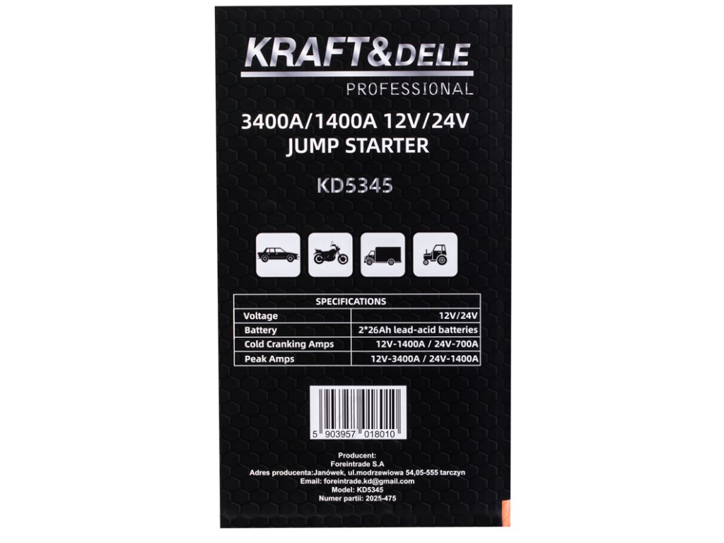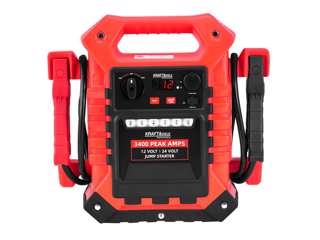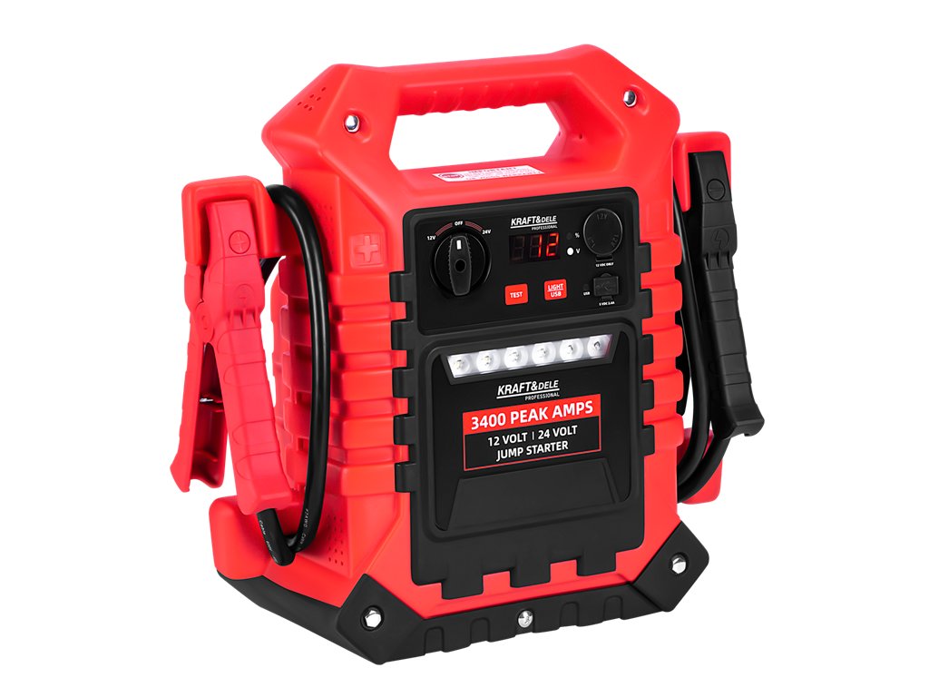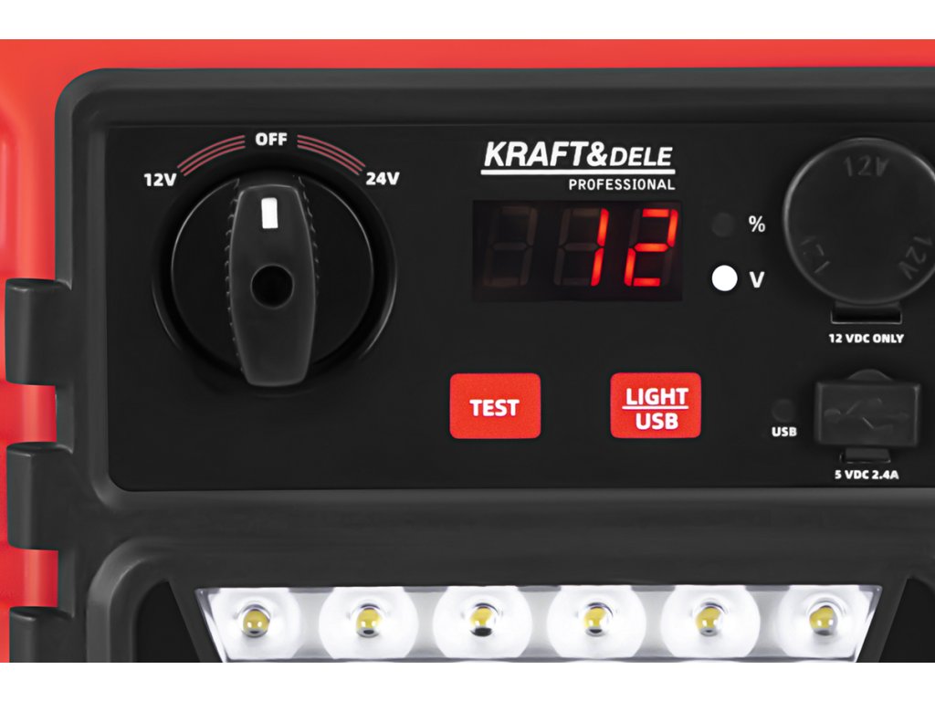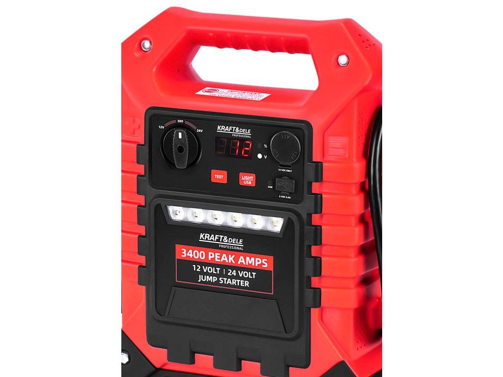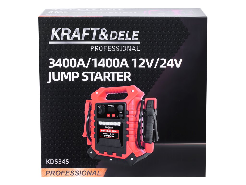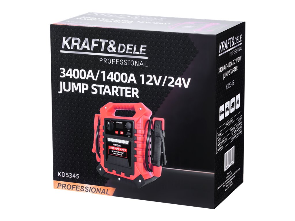 Kraft&Dele KD5345, Multifunkční startovací zařízení 3400A/1400A 12V/24V s LED osvětlením, USB a AGM akumulátory