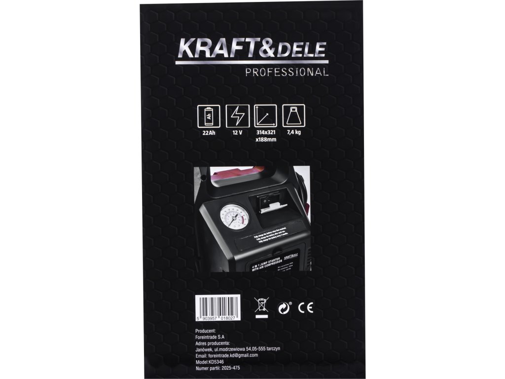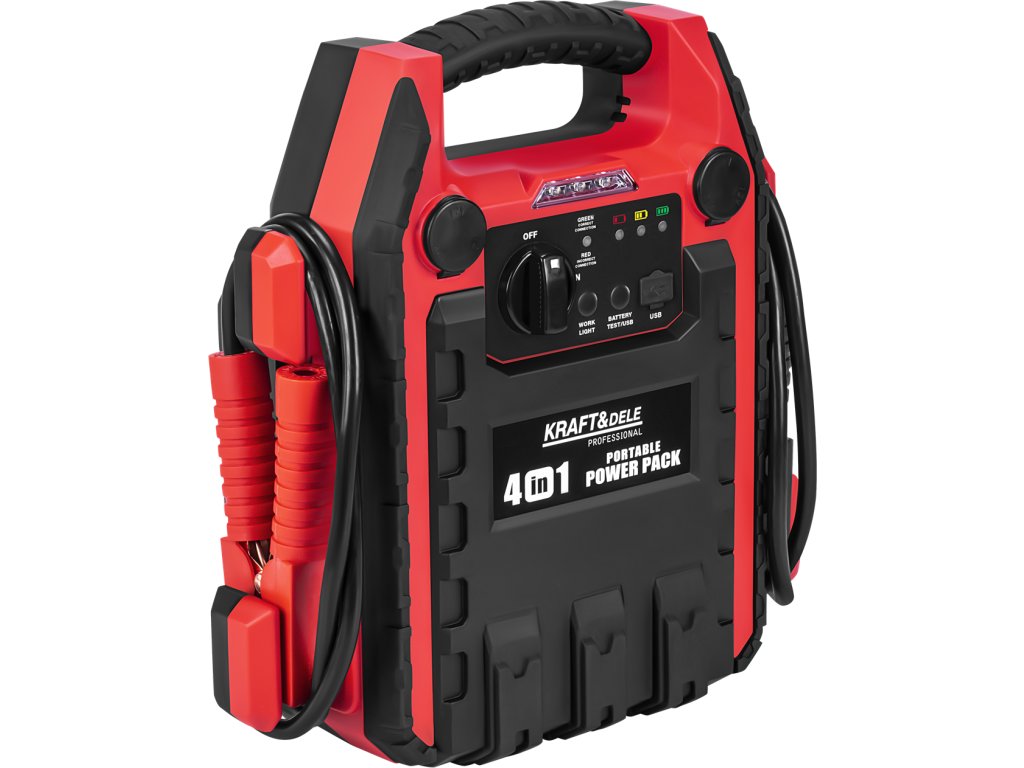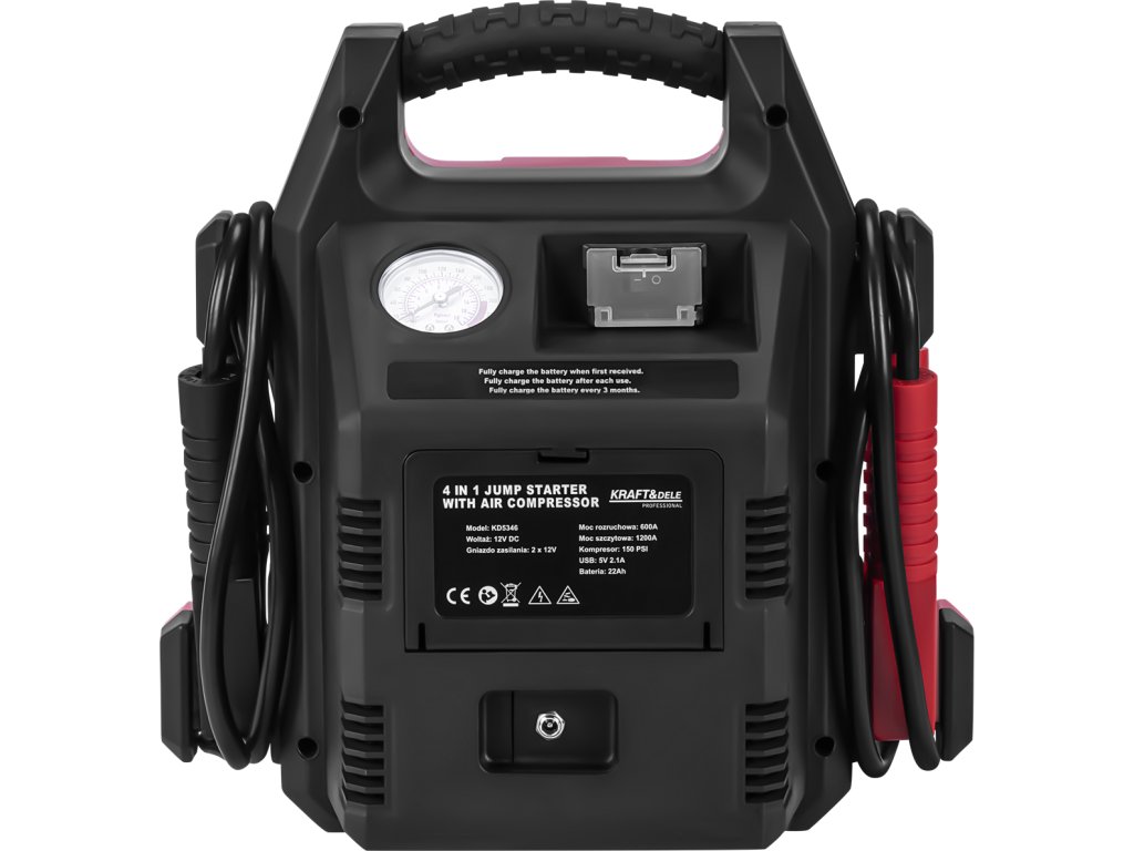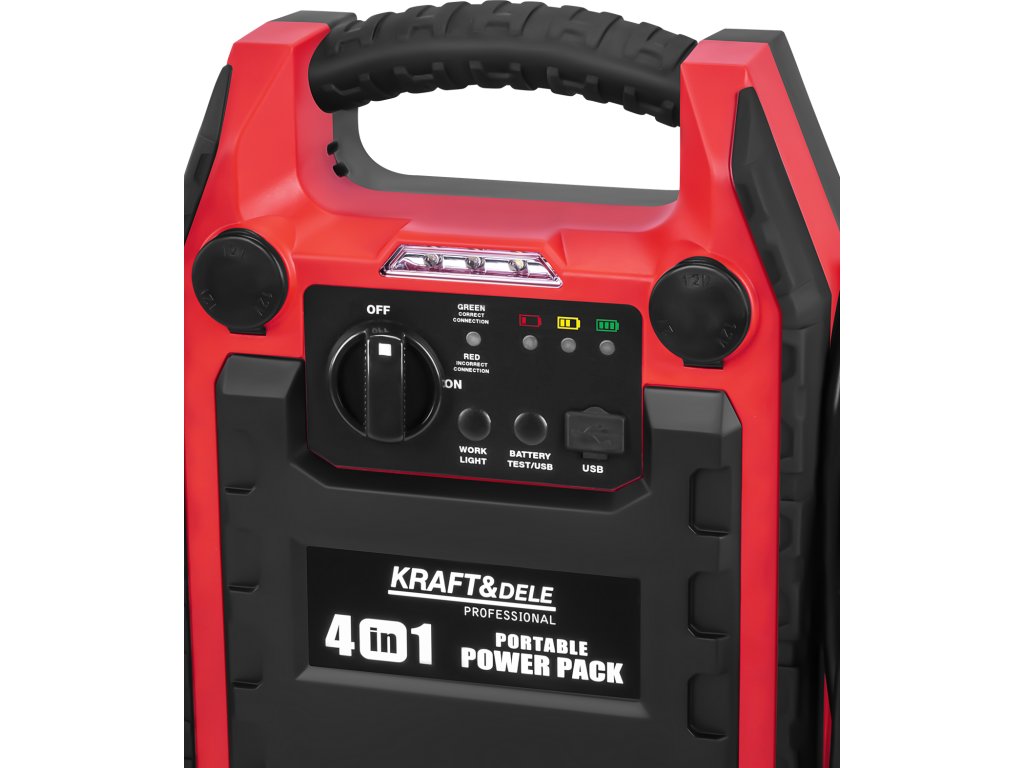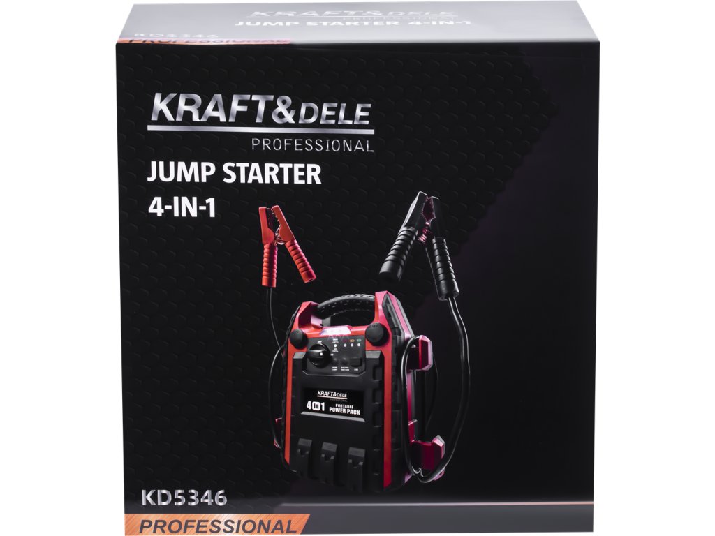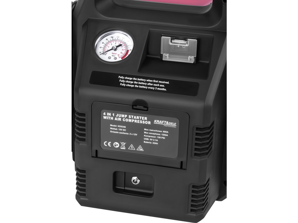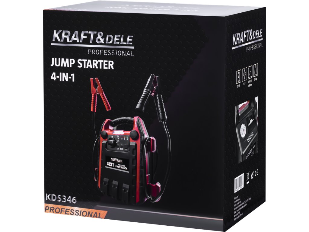 Kraft&Dele KD5346, multifunkční jump-starter 4v1 s 1200A startovacím proudem, 22Ah baterií, 12V kompresorem a LED osvětlením---
