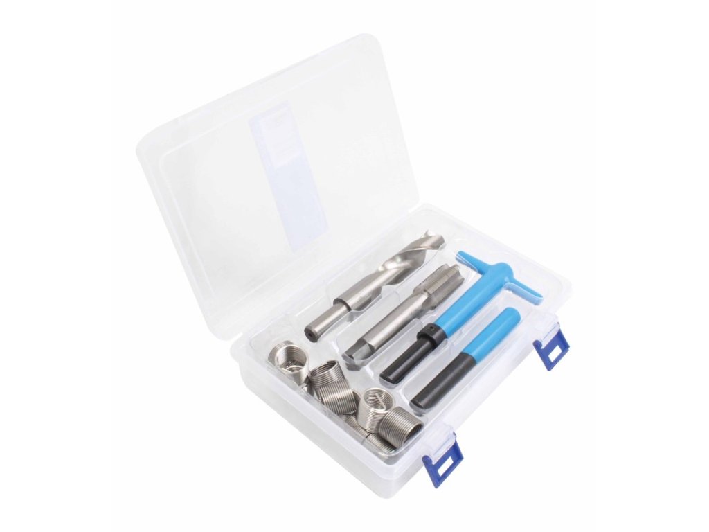 Profesionální sada na opravu závitů pro šrouby M14x1,5. Vysoká kvalita materiálů zajišťuje odolnost a dlouhou životnost. Snadná a rychlá instalace bez nutnosti náročného nářadí....