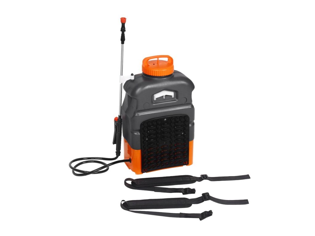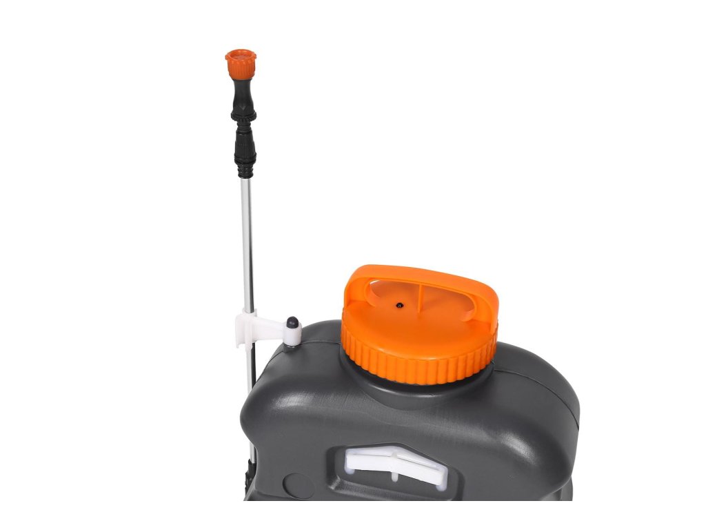 nádrž 16 l s priehľadnou stenou na kontrolu hladiny batéria 12 V/8 Ah s dlhou výdržou na jedno nabitie výkonné membránové čerpadlo s automatickým tlakovým spínačom kovová...