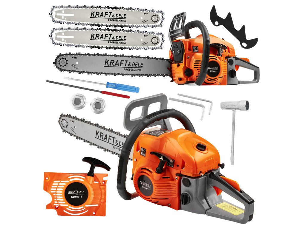 - profesionálna benzínová píla KD10613 značky Kraft&Dele je vhodná pre lesníctvo, poľnohospodárstvo aj na domáce použitie