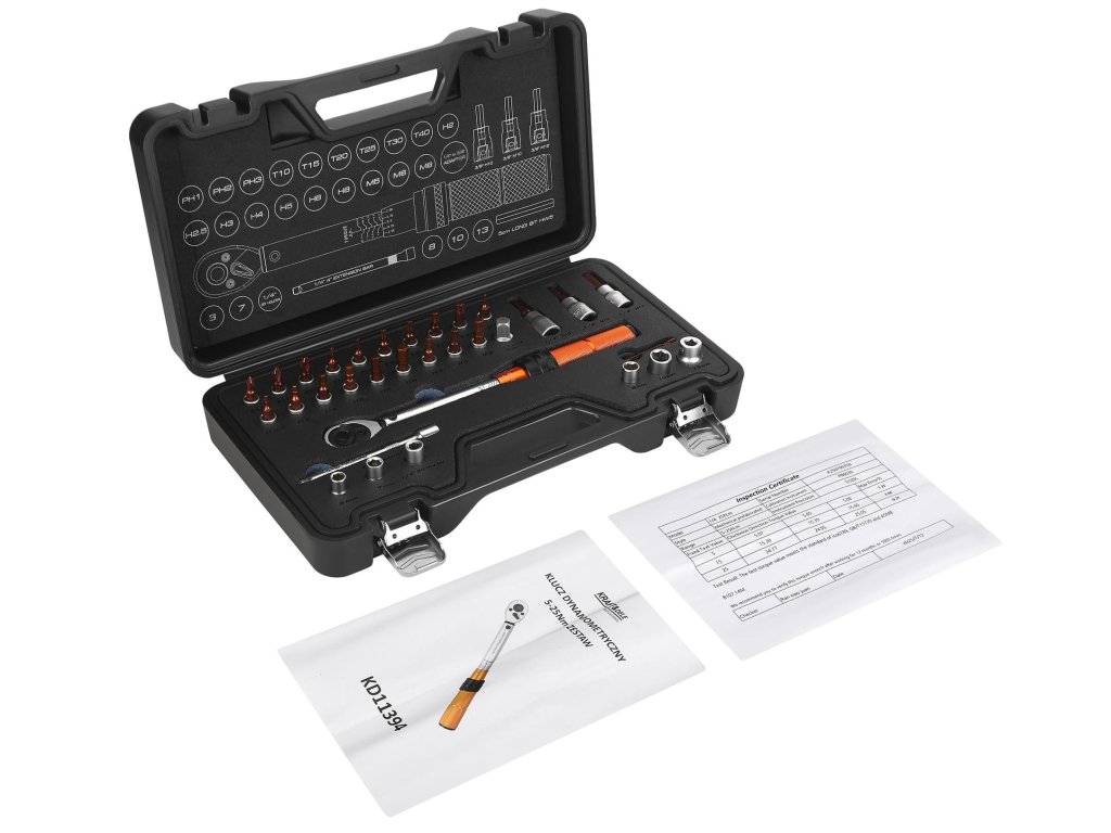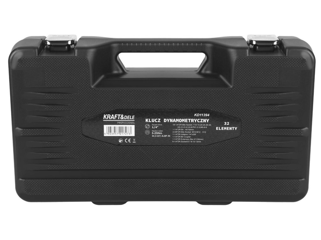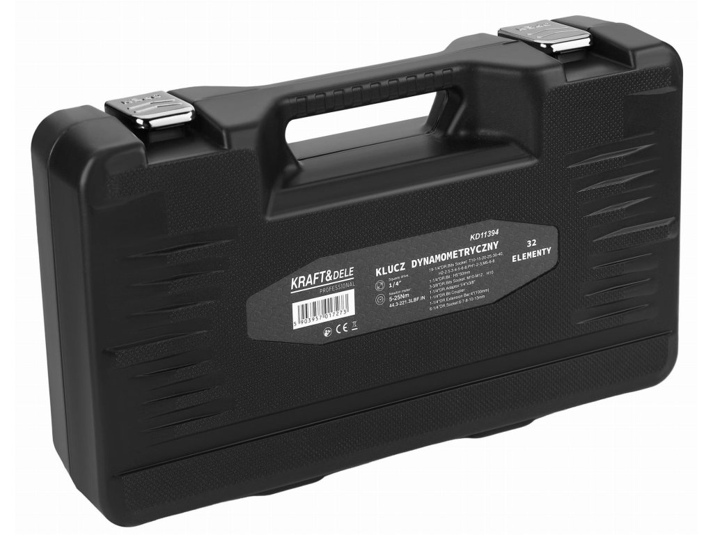 Kraft&Dele KD11394, Klíč dynamometrický 1/4" 5–25 Nm | 32dílná sada, plastový kufr, ergonomická rukojeť