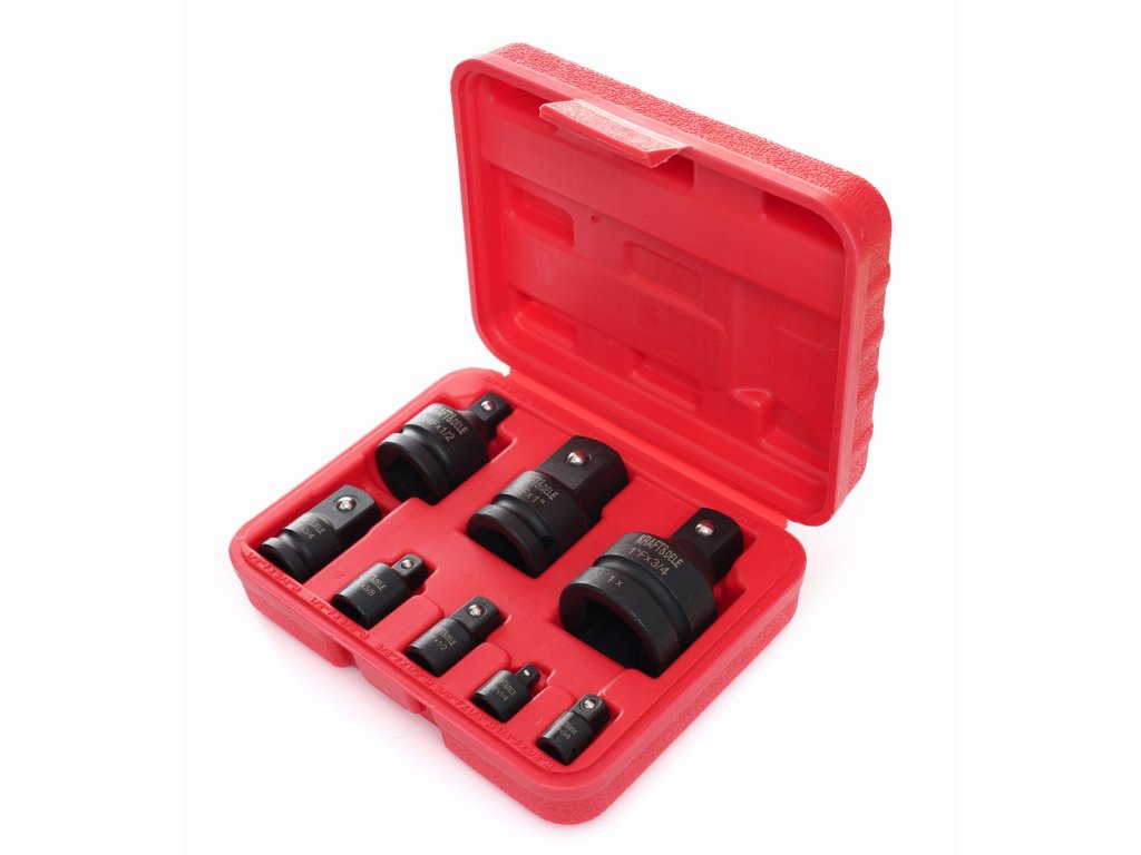 - Sada obsahuje 8 různých typů rázových redukcí, které zajišťují kompatibilitu s více druhy nástrčných klíčů a nářadí.
