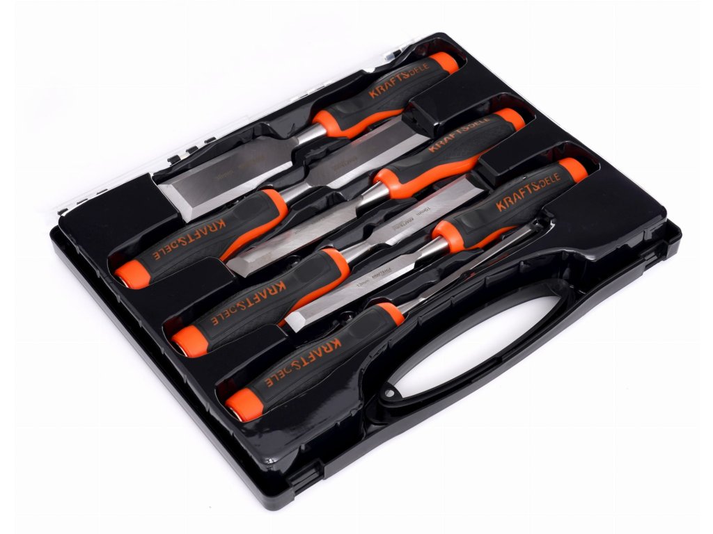 Kraft&Dele KD11772, Tesařská dláta sada | 6 druhů, kvalitní ocel, protiskluzová rukojeť, praktický kufřík**