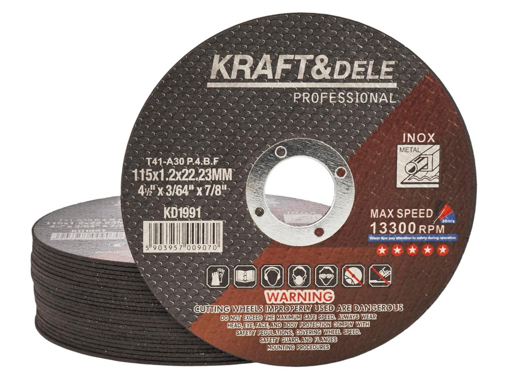 Kraft&Dele KD1991, Řezný kotouč na kov | 115 x 1,2 x 22,23 mm, vysokorychlostní, odolný s brusivem oxidu hlinitého---