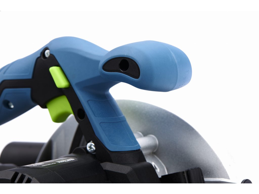 - Vybavena je kvalitním 165 mm řezným kotoučem, který umožňuje řezání podélně, příčně i pod úhly.