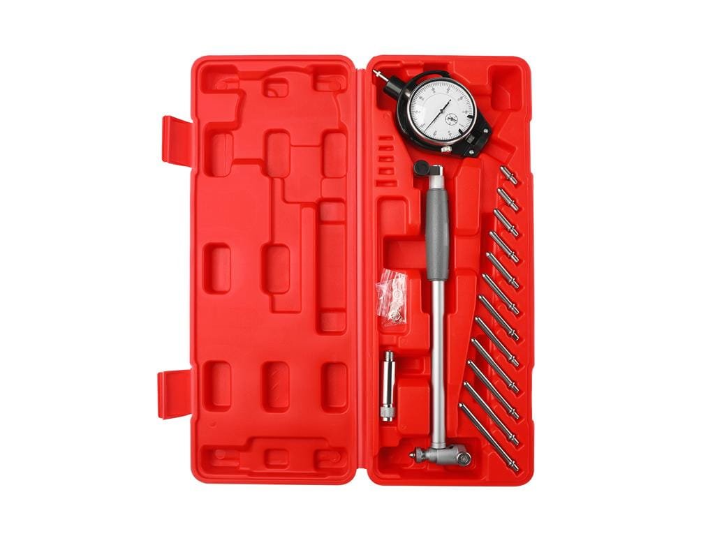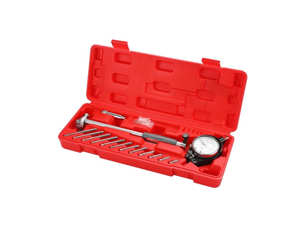 Tento profesionální středový sklápěcí ciferník KD3579 je navržený pro precizní měření vnitřních průměrů válců a otvorů, zejména u spalovacích motorů. Díky vysoké přesnosti 0,01 mm dokáže detekovat i drobné opotřebení, ovalizaci či chyby při montáži bez nutnosti demontáže dílů. Skládací konstrukce zaručuje snadné přenášení a skladování, zatímco kombinace oceli a hliníku zajišťuje vysokou odolnost dílenských podmínek a dlouhou životnost nástroje. Analogový číselníkový snímač s čitelným dělením po 0,01 mm umožňuje rychlé a přesné odečty, což usnadňuje pravidelné kontroly a údržbu.Obsah balení