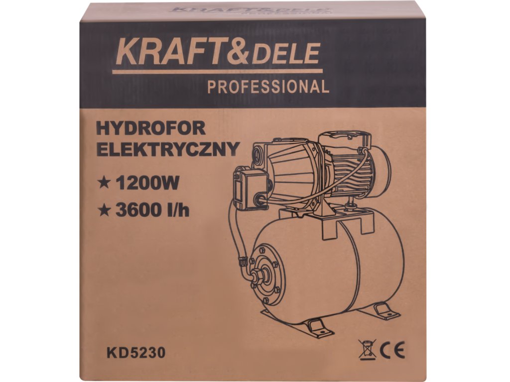 Kraft&Dele KD5230, Hydroforové čerpadlo 1200W 3600 l/h | 24L nádrž, max. zdvih 50 m, tlak 5 bar