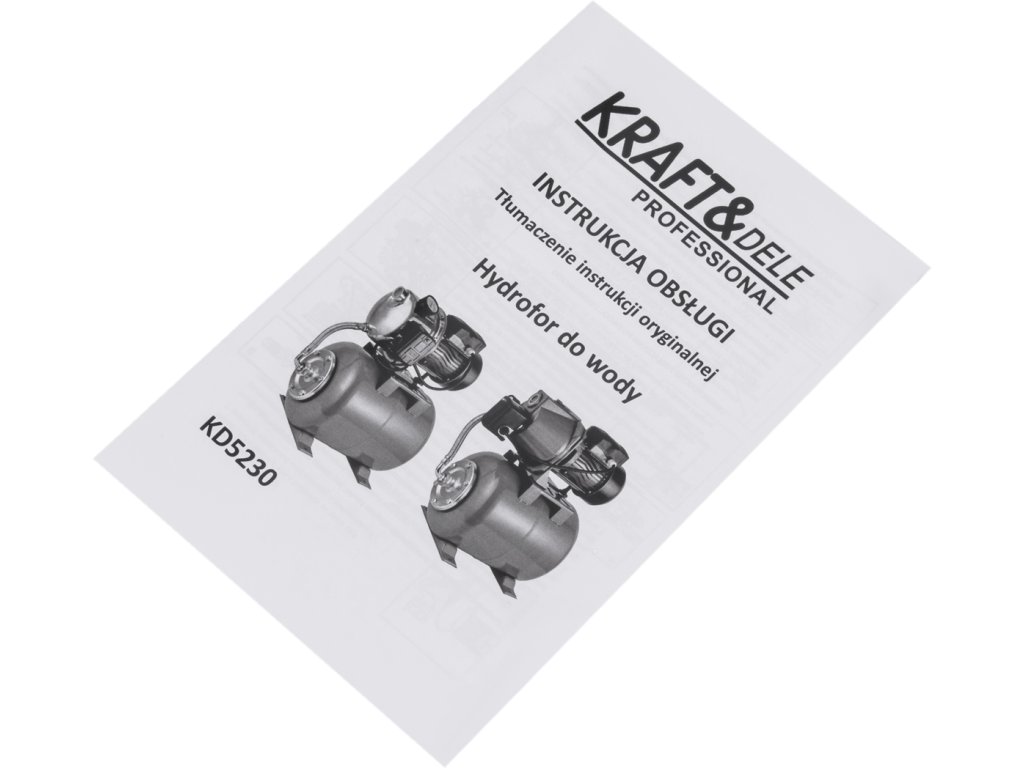 - Elektrický hydrofor Kraft&Dele KD5230 včetně všech nezbytných komponentů pro instalaci.
