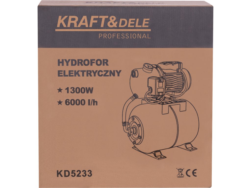 Vyberte si výkonný a spolehlivý elektrohydrofor KD5233 s příkonem 1300 W, kapacitou nádrže 50 l, vysokým průtokem až 6000 l/h, možností nasávání vody z hloubky 8 m a dlouhodobou zárukou pro stabilní a bezproblémový provoz.