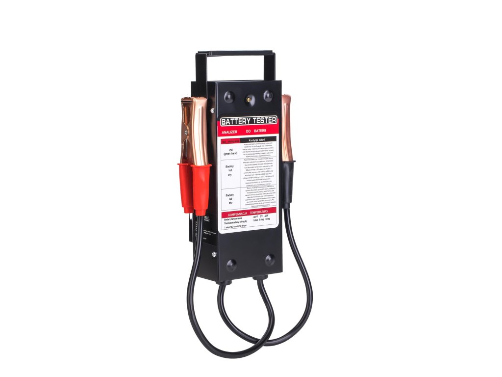 - Analogový tester výkonu baterií určený pro kontrolu stavu 6V a 12V olověných akumulátorů.