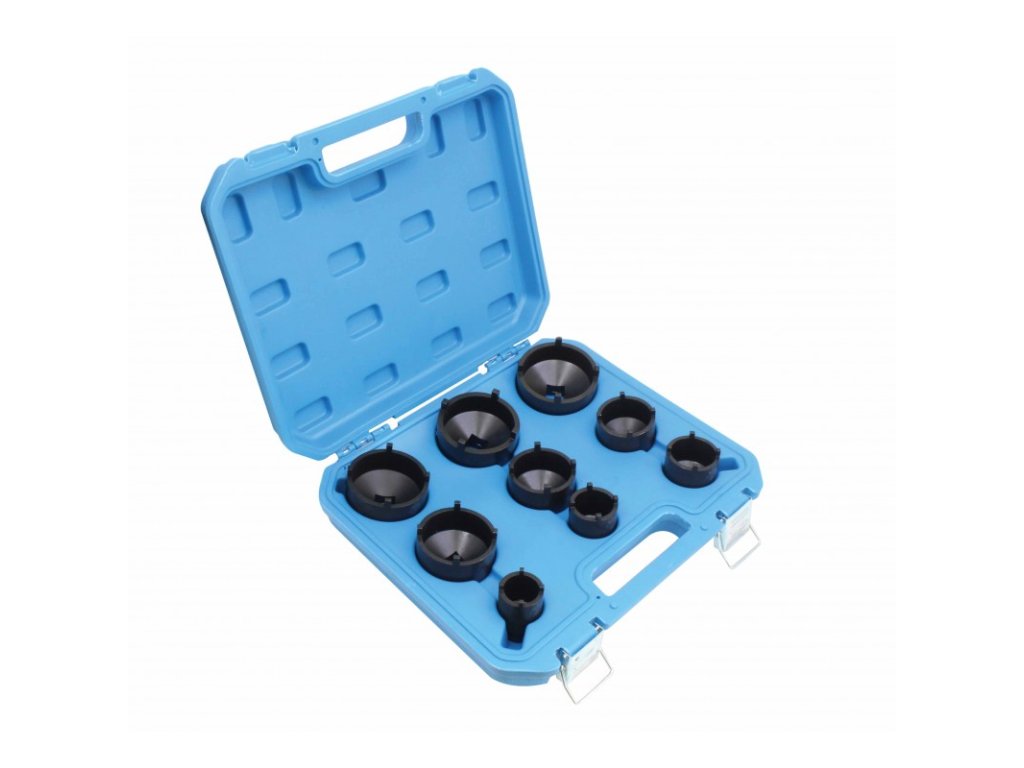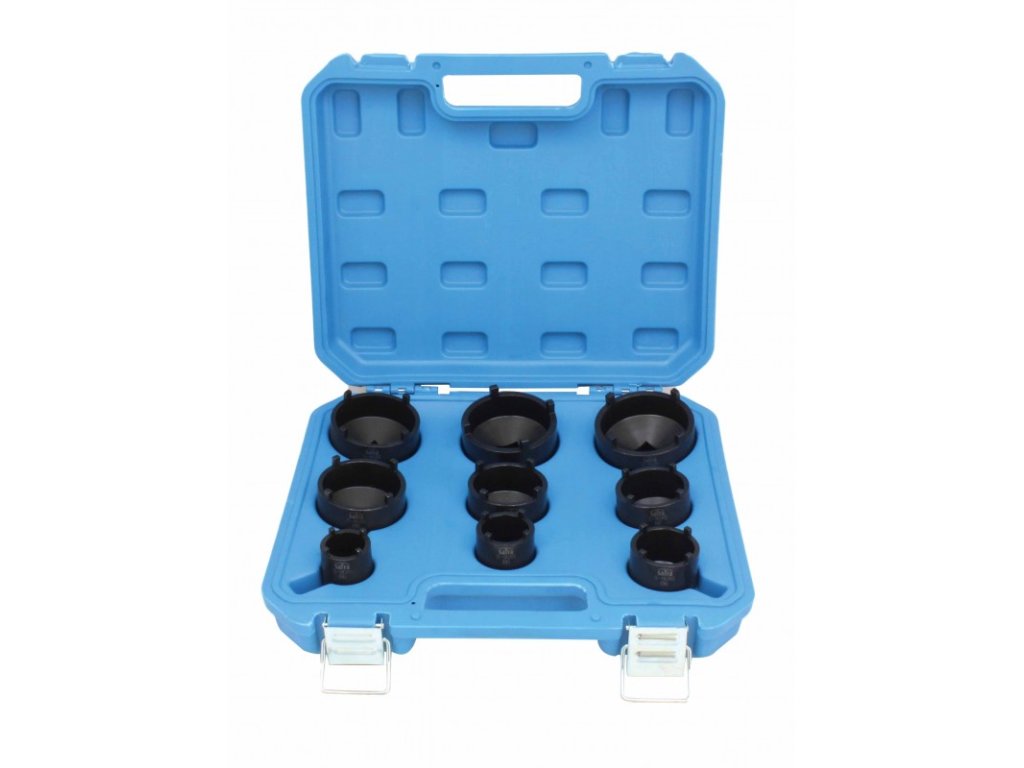 - Sada nástrčných hlavic: různé velikosti přizpůsobené maticím s vnějším ozubením.